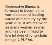inking low n-3 LC-PUFA or fish intakes or high linoleic acid consumption with depressive illness. The investigators suggested the possibility of a sex-specific effect of PUFA intakes and depressive illness because the associations in men and women were so different.