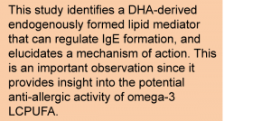 - This study assessed the effect of DHA-derived lipid mediators on IgE formation by B-lymphocytes, an important component of the adaptive immune system that is activated in allergies.